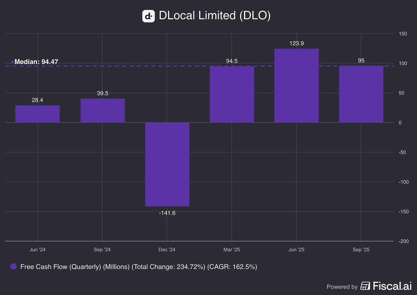dLocal has established a record of highly predictable and consistent FCF generation, which is evident as most of their quarterly results are close to the period’s median of $94.5 million. This is something we look for when researching companies as it reduces investment risk and supports higher valuation multiples for the stock.