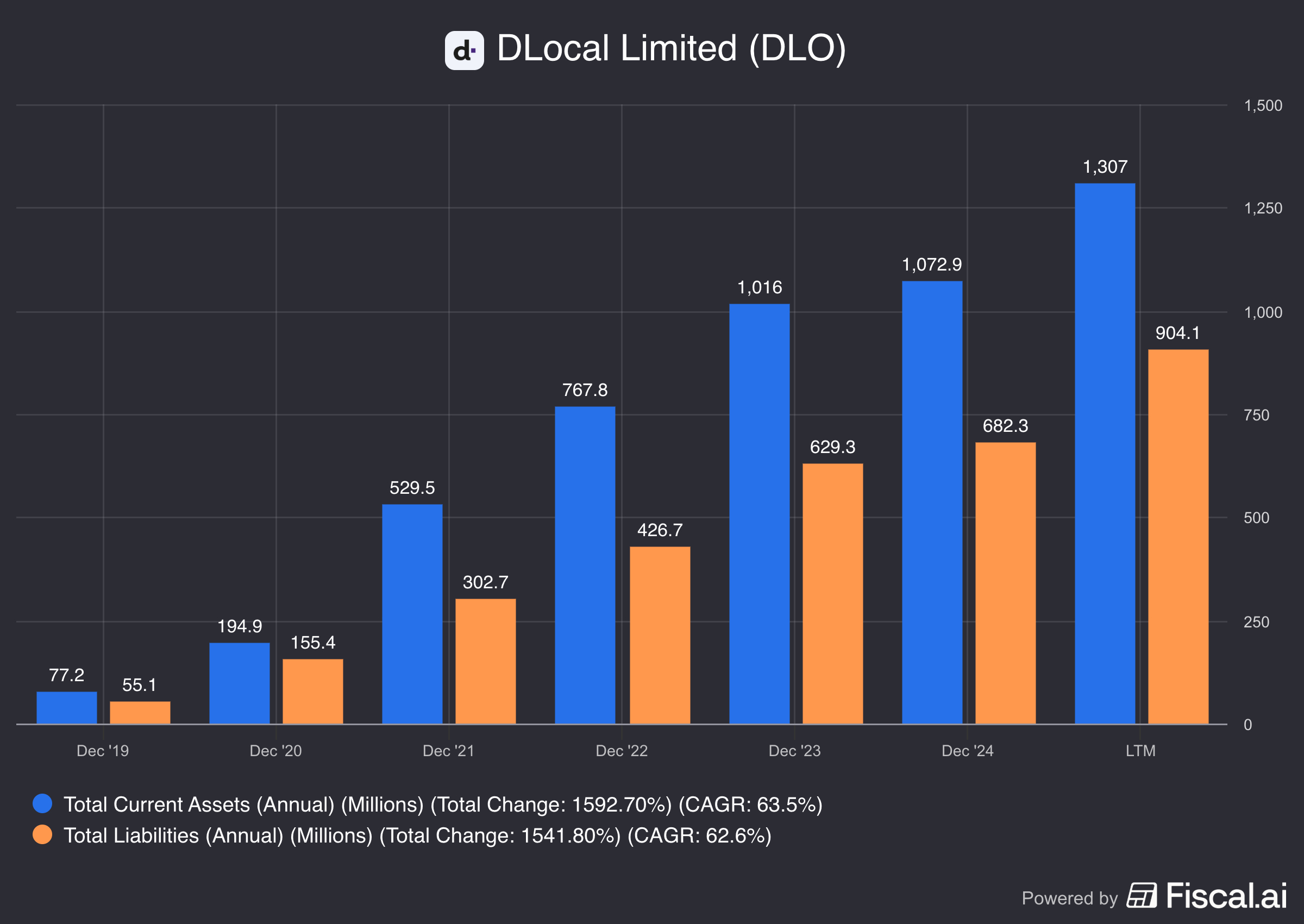 dLocal's balance sheet is very solid. As of November 2025 its current assets were $1.3 billion, while its total liabilities amounted to $0.9 billion.