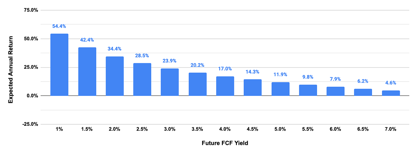 However, even if this company traded at a more discounted multiple in the future, at a 4% FCF yield, the expected IRR is still above 15% CAGR.