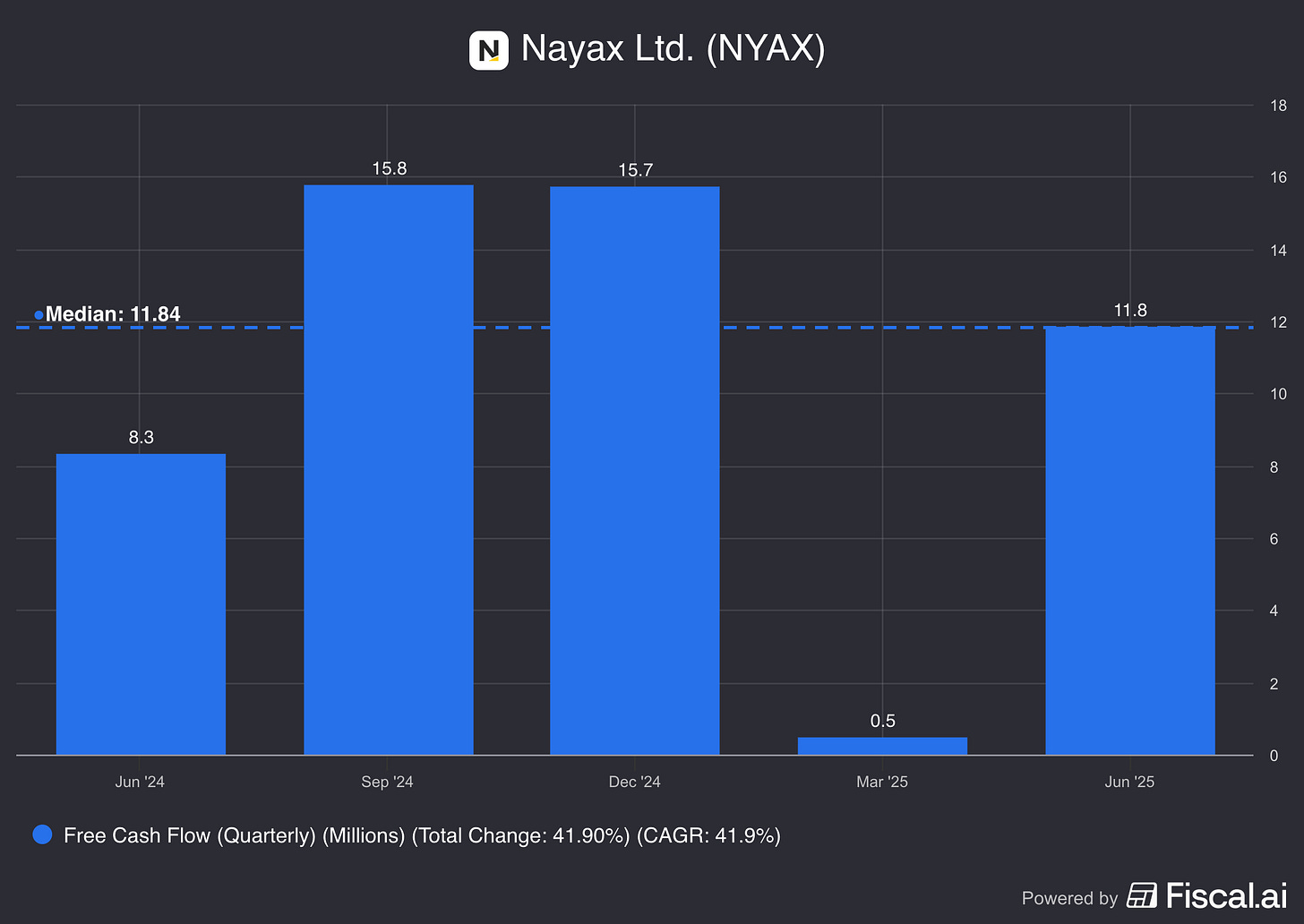 The company generated over $39 million in FCF in FY2024 and has already established a record of consistent FCF generation, with quarterly results clustering around the one-year median of $11.8 million.