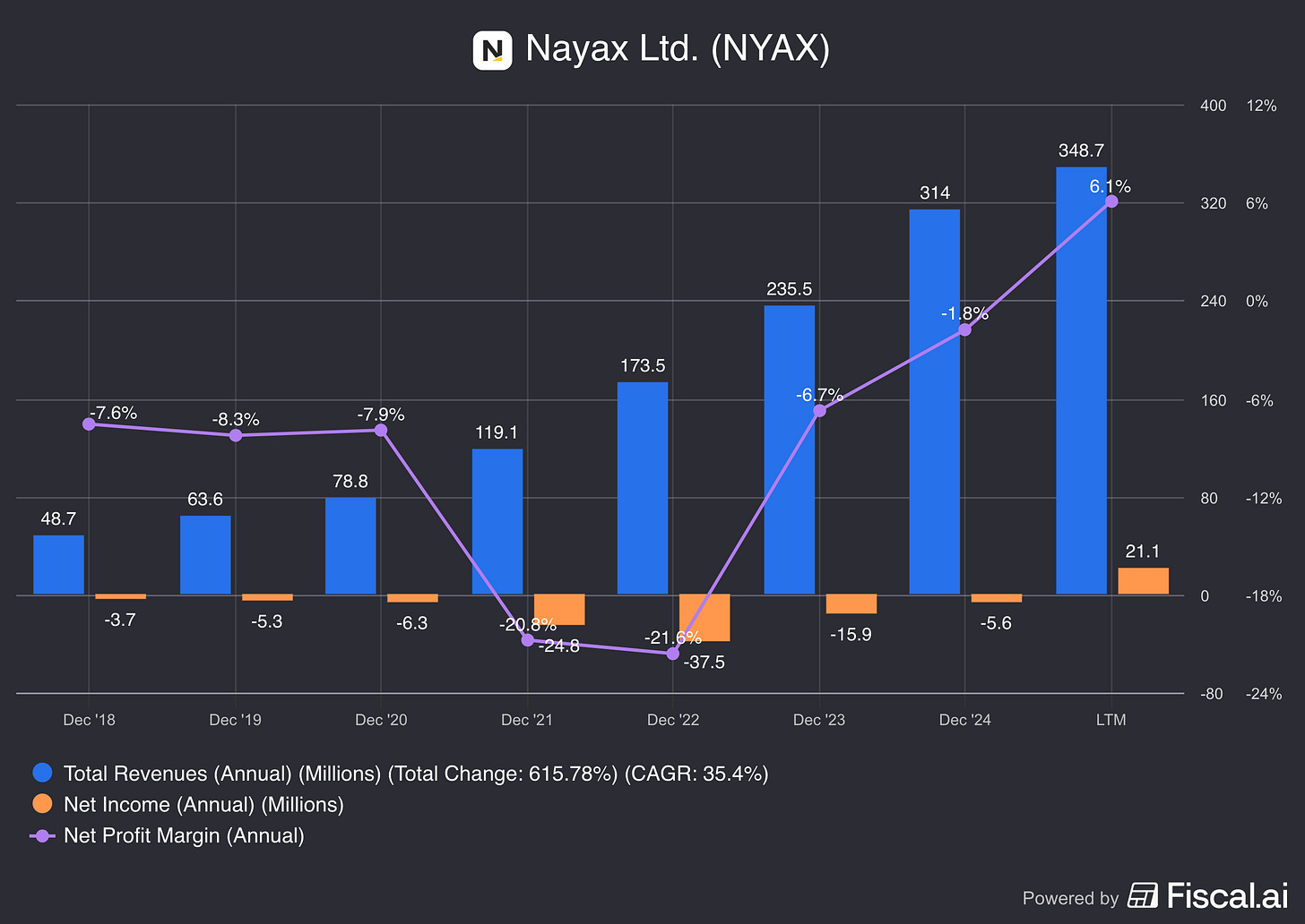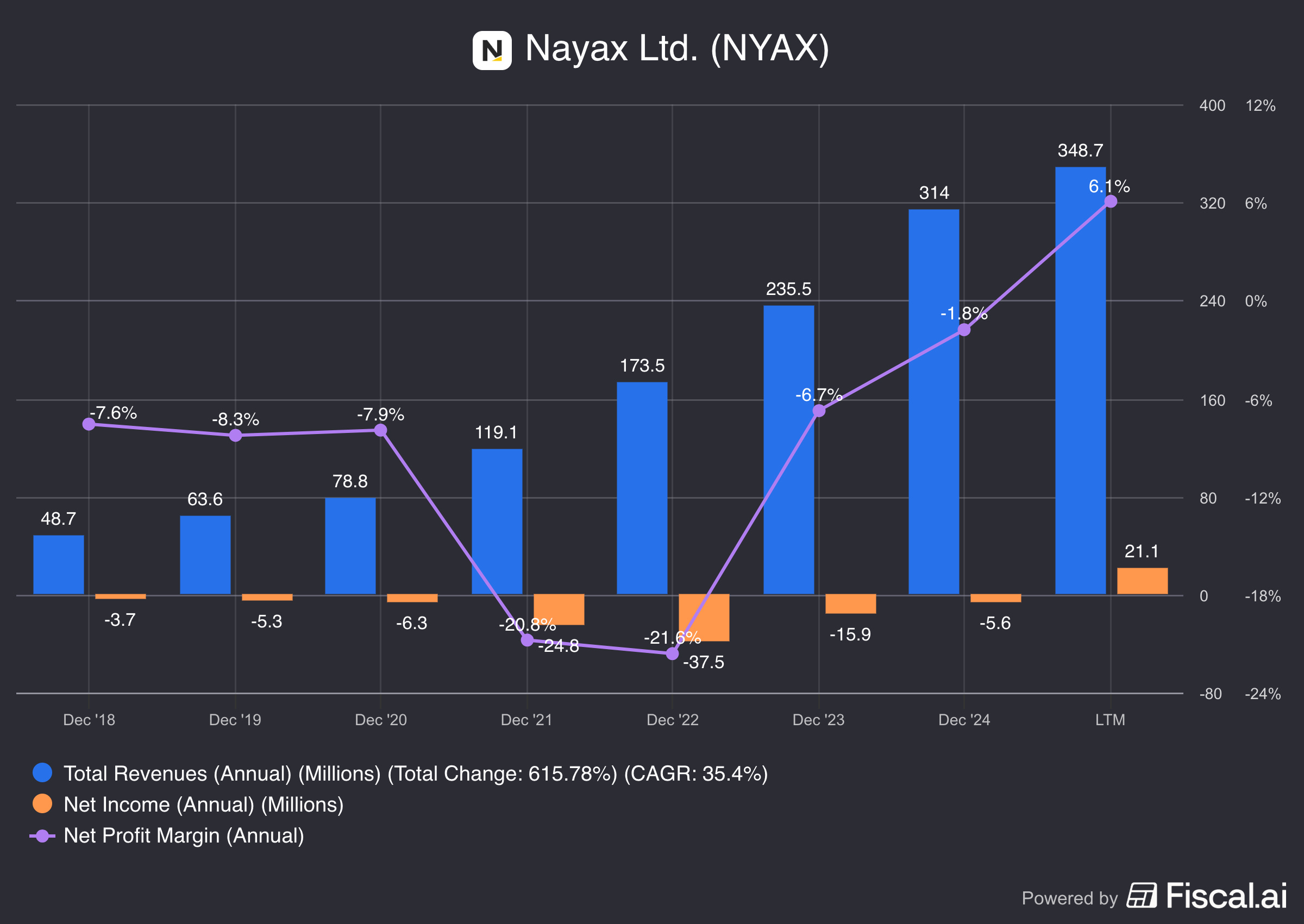 In 2024, Nayax reported a strong fiscal year with revenue growth of 33% to $314.0 million, achieving its first profitable quarter.