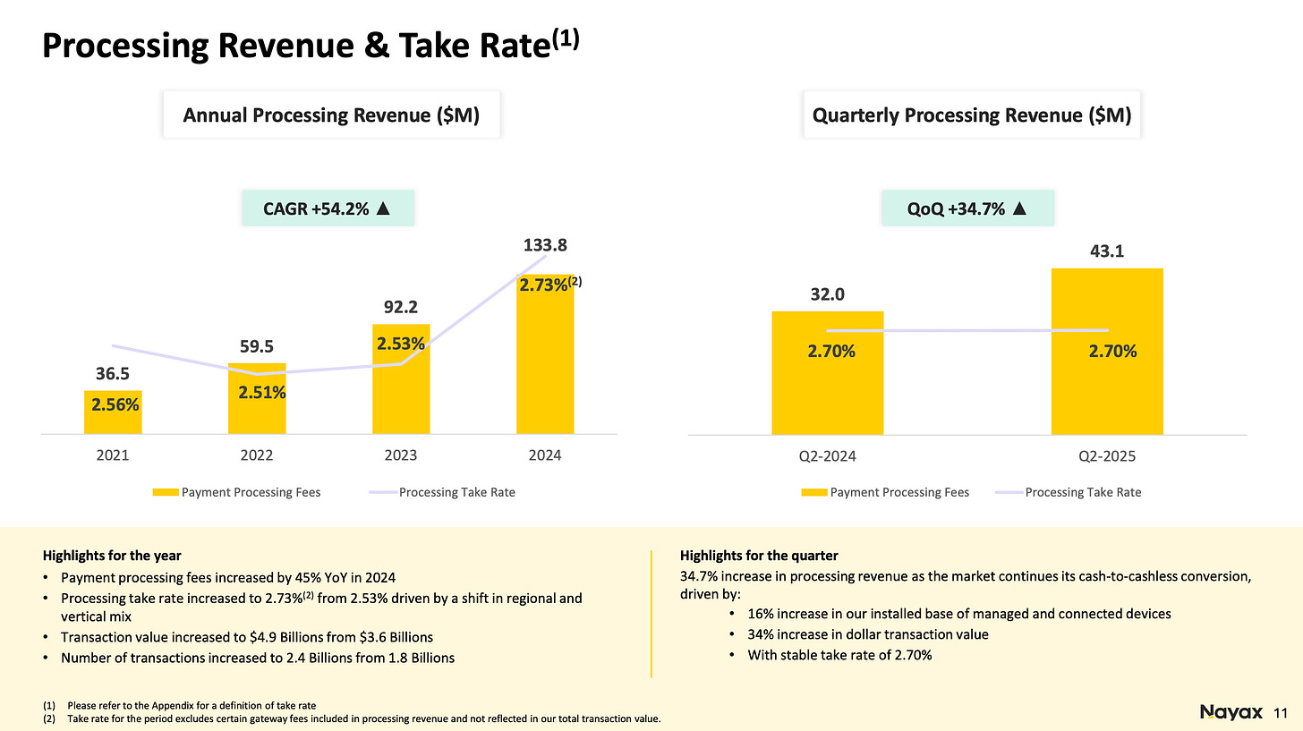 This can be seen due to their rising average take rate and the growing number of connected devices, from 1.19 million in Q2 2024 to 1.38 million in Q2 2025, a 16% growth.