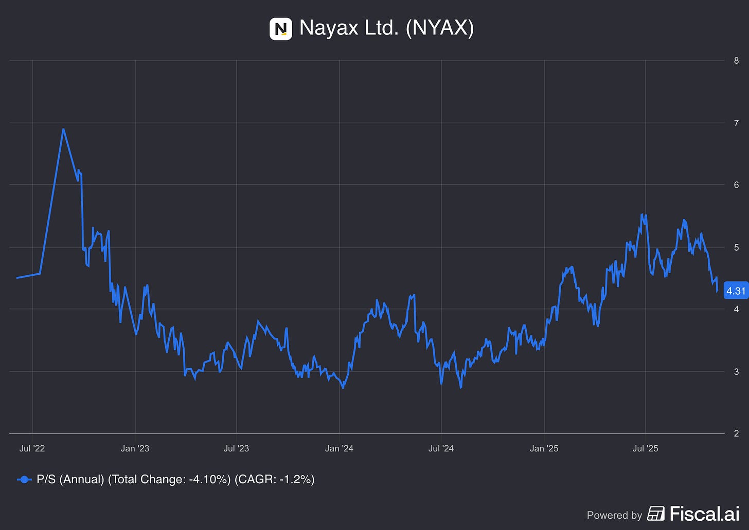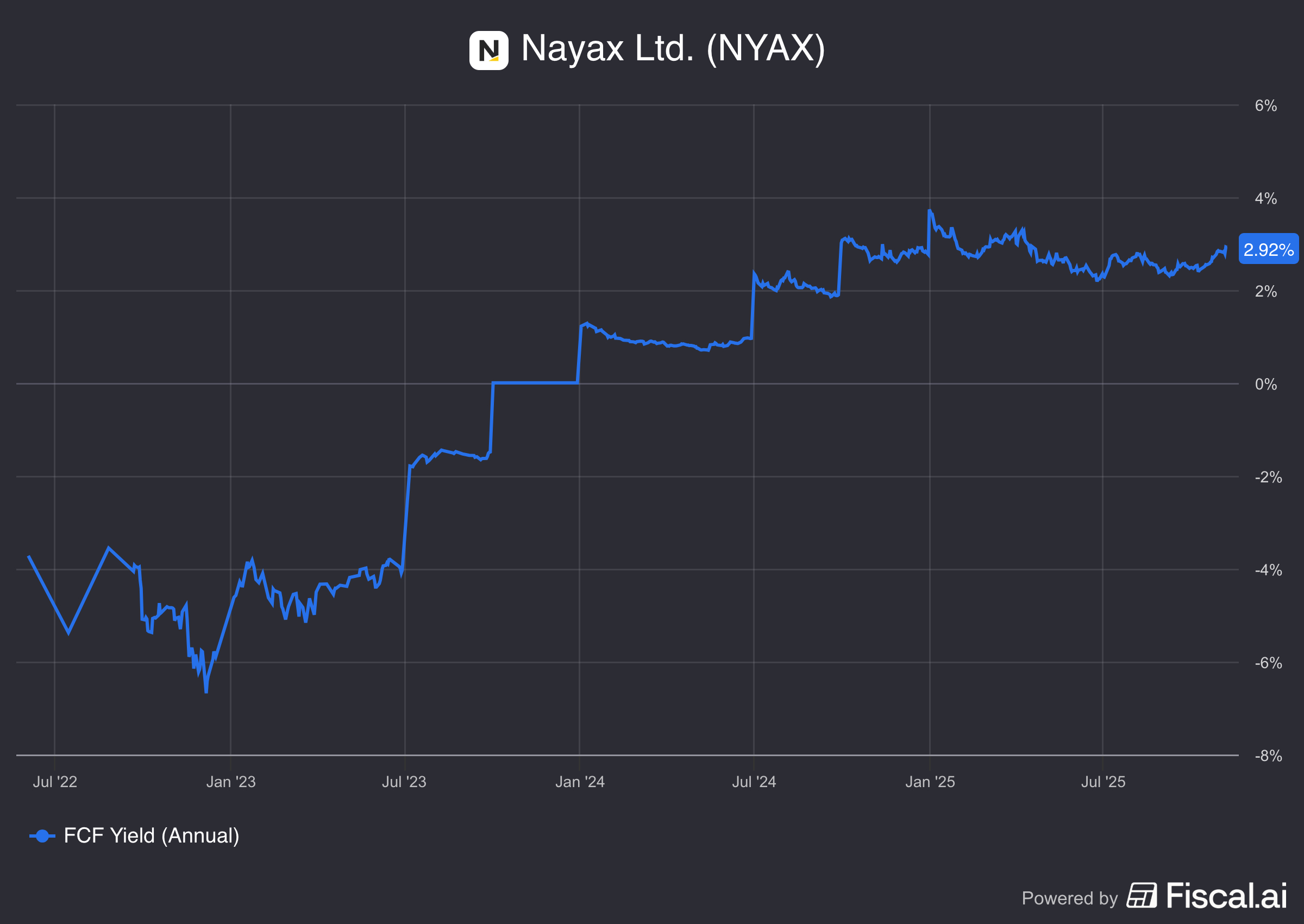 On the other hand, Nayax is currently trading at a FCF Yield of 2.9%, which is close to a reasonable long term bond yield of 3%.