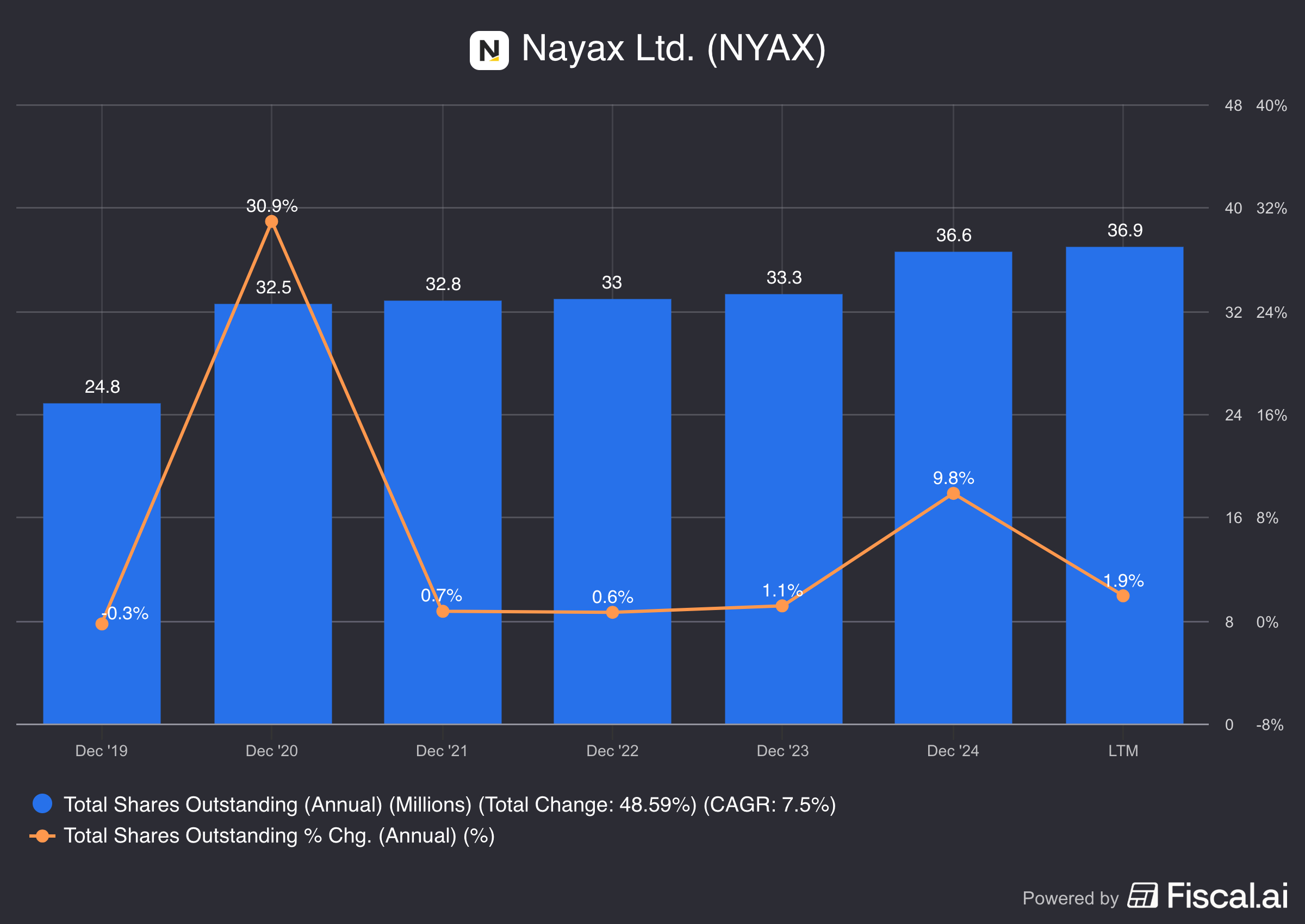 Even though Nayax diluted its shareholders by increasing its total shares outstanding by 10% from FY2023 to FY 2024, this was a one-time issuance part of the acquisitions conducted throughout the year.